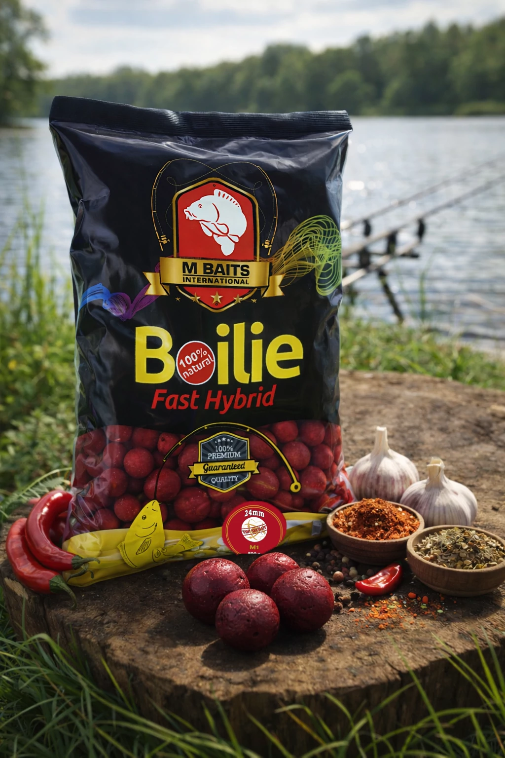 Az M1-es fantázia nevű bojli, egy fűszeres alapú igazi nagyágyú. Összetételét tekintve minden étvágyfokozóval és vitaminnal készül, mely a pontyok számára kelendő. Horgászaink a legtöbb versenyen ezzel az ízesítéssel értek el nagy sikereket, többek között a 2021-es IBCC-n összetett 3.helyezést.